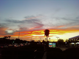 Monday was back to work. After work, I went back out for another drive, and stayed out until dinner. After finished dinner, I went out and was greeted by one of the most amazing sunsets I have ever seen. Naturally, I didn't have my good camera with me. I took this with my cell's camera, but not even the best equipment could match the view. It was beautiful, and I was so thankful I got to see it firsthand.